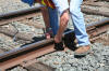 Bill lubing fan at Front Street
